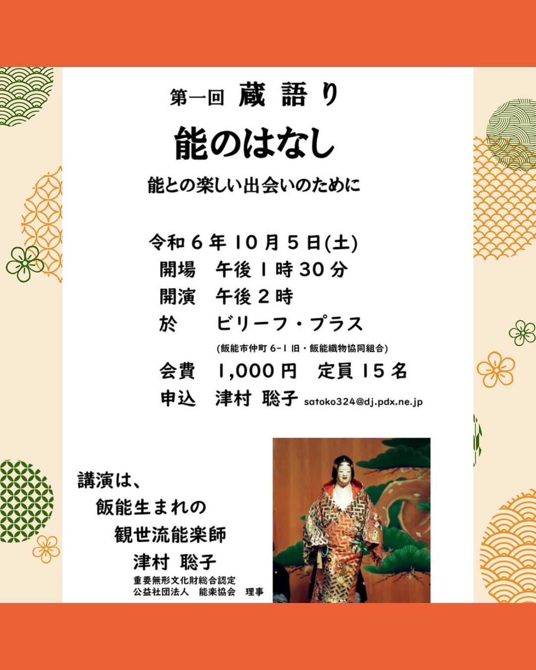 講演は、飯能生まれの観世流能楽師の津村聡子さま