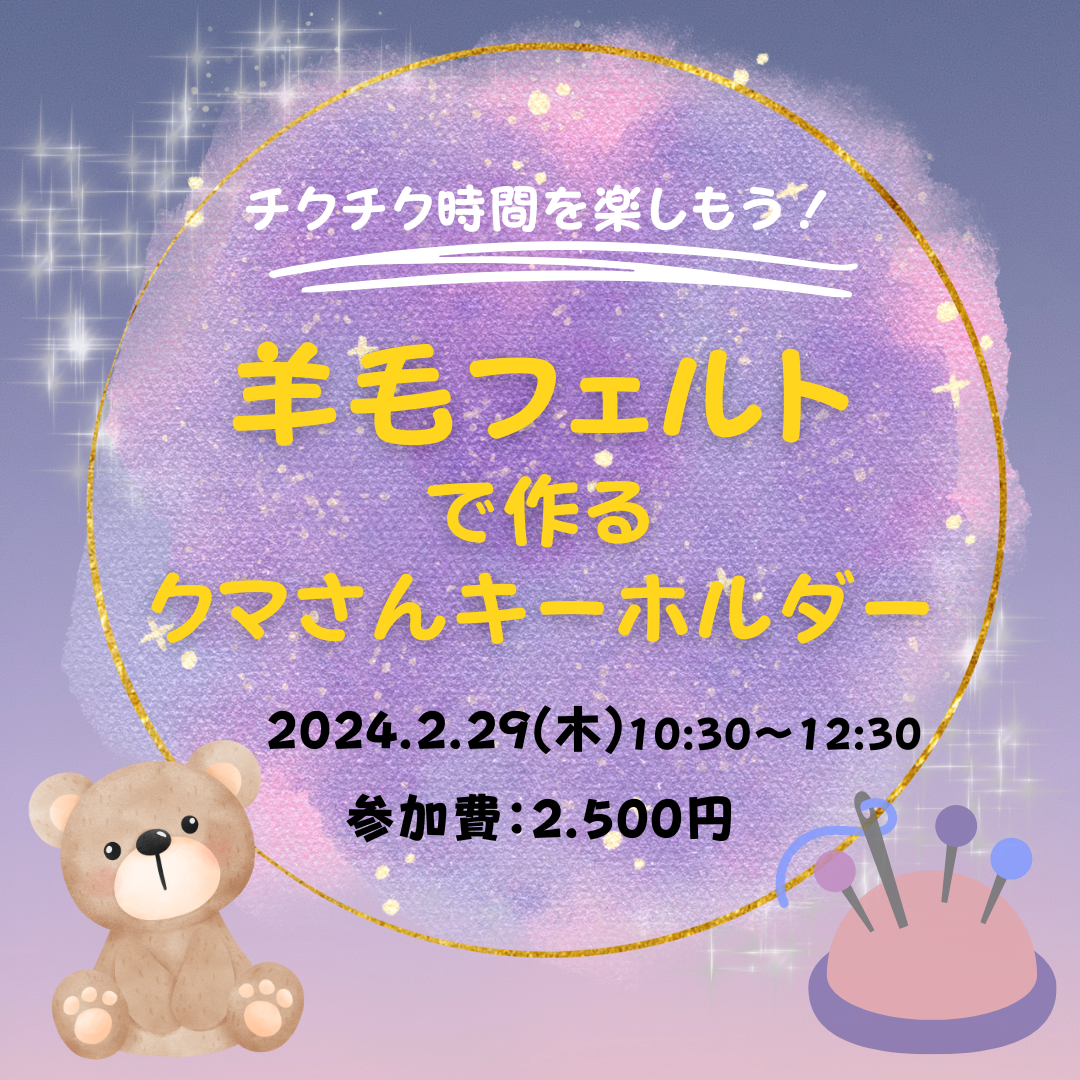 羊毛フェルトで作るクマさんキーホルダー